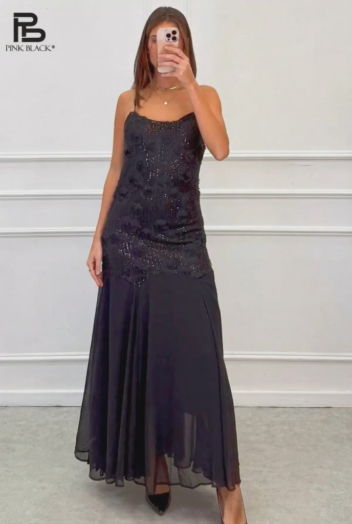 Abito lungo, elegante. Corpetto lungo in pizzo e paillettes. Gonna ampia il Voile. Taglia unica con vestibilità S,M,L.